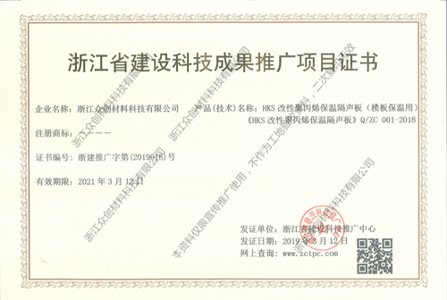 浙江省建設(shè)科技推廣項目證書